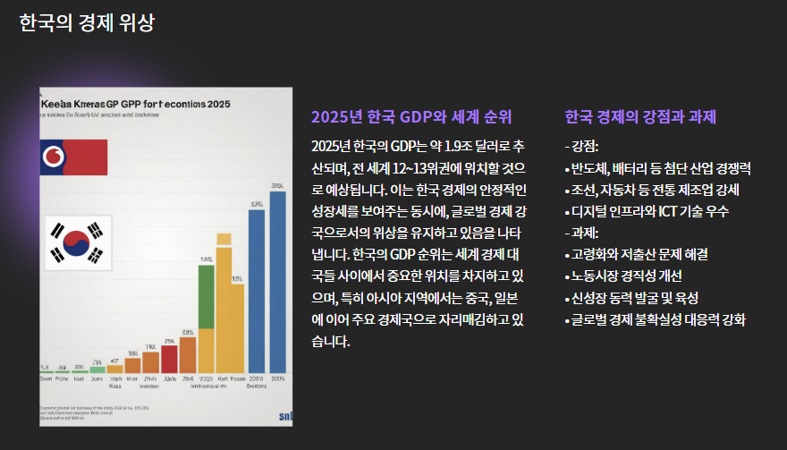 2025년 현재, 세계 경제는 팬데믹 여파 회복, AI 산업 성장, 지정학적 리스크 등 다양한 변수 속에서 경제 순위에 적지 않은 변화를 가져왔습니다.