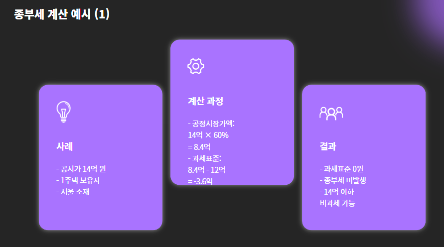 👉 결론: 공시가격이 14억 이하인 경우, 종부세 미발생 가능