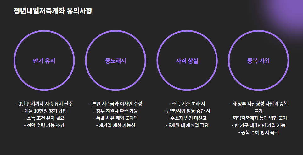 - 다른 정부 자산형성 사업과 중복 가입 불가 (예: 희망저축계좌 등)