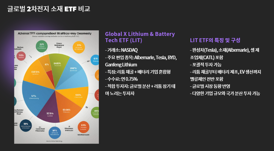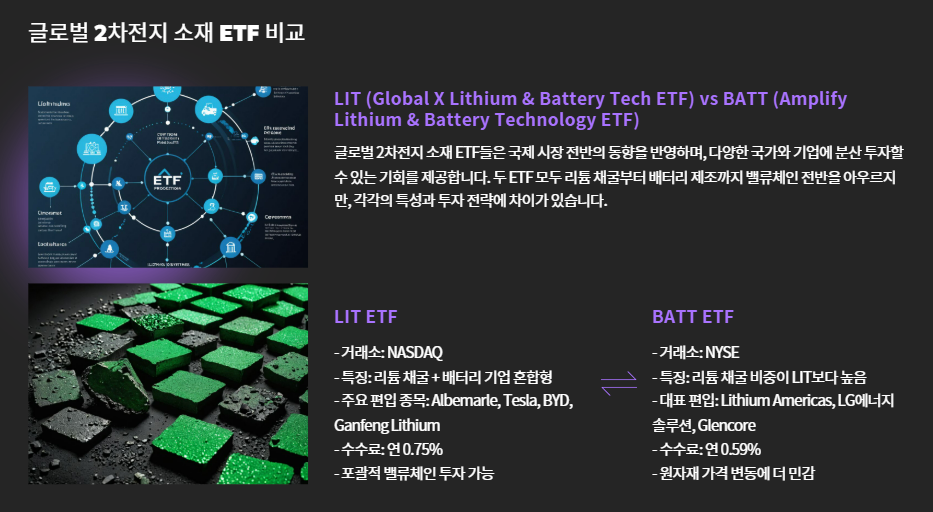 | LIT | 미국 | 리튬 + 배터리 + EV 혼합 | 0.75% | 중간~높음 |