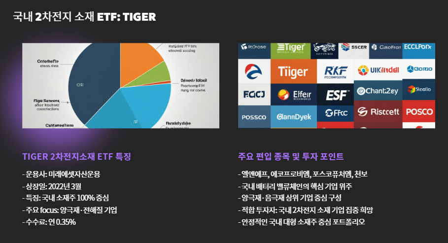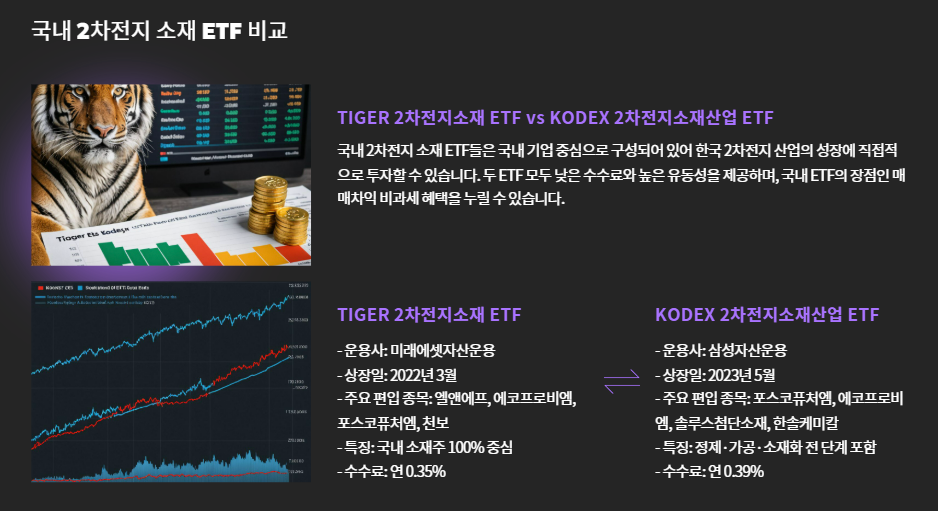| TIGER 2차전지소재 | 국내 | 국내 소재주 (양극재 중심) | 0.35% | 중간 |
