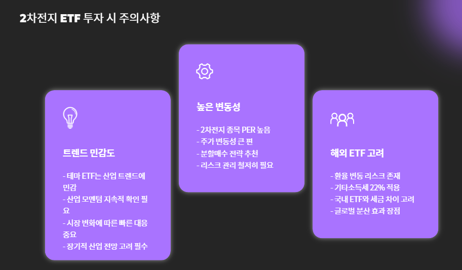 - 2차전지 종목은 PER이 높고 주가 변동성이 큼 → 분할매수 전략 추천