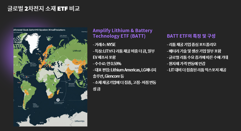 | BATT | 미국 | 리튬 채굴 기업 중심 | 0.59% | 높음 |