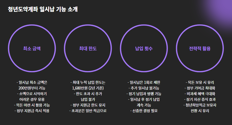 기존에 청년희망적금을 보유하고 있었다면 일시납 기능도 활용할 수 있다.
