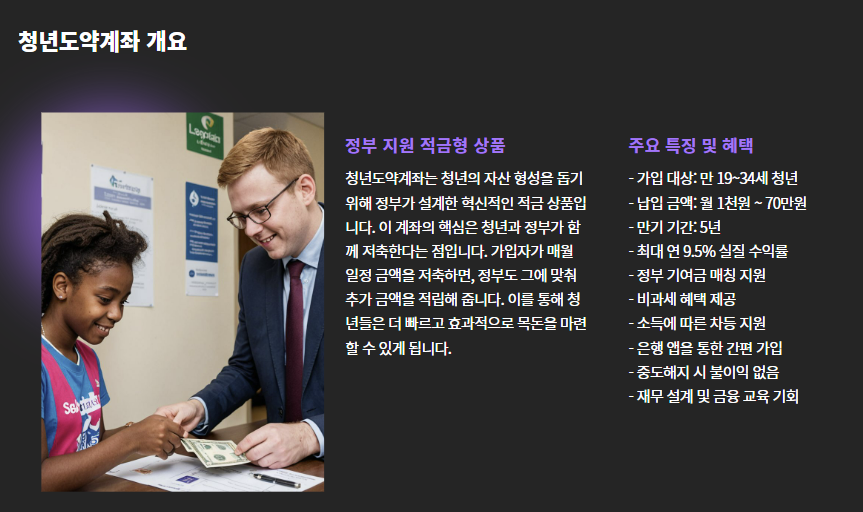 청년도약계좌는 청년의 자산 형성을 돕기 위한 정부 지원 적금형 상품이다.