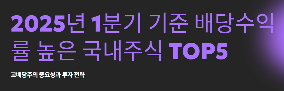 2025년 1분기 기준으로 가장 높은 배당수익률을 기록한 고배당주 TOP5는 다음과 같습니다: