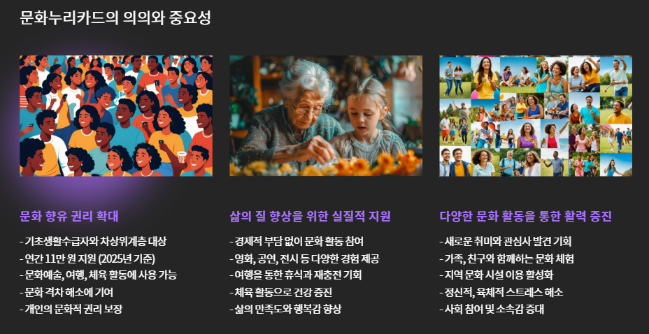 문화누리카드는 기초생활수급자 및 차상위계층을 위한 정부 지원 복지카드입니다.