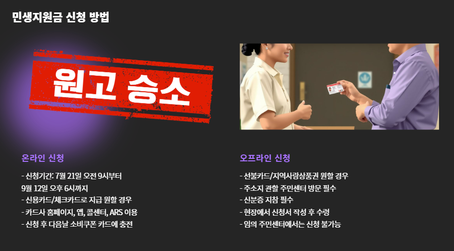 - 신용/체크카드: 소비쿠폰 형태로 카드에 충전되어, 일반 카드결제 시 자동 차감