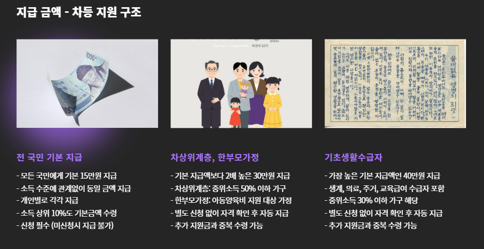 이번 민생지원금은 기본 15만 원에서 최대 45만 원까지 차등 지급됩니다: