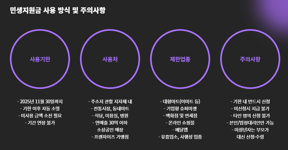 민생지원금은 본인이 선택한 지급 방식에 따라 아래와 같이 사용됩니다: