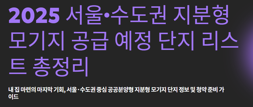 이번 글에서는 2025년 이후 공급 예정인 서울 및 수도권 주요 지분형 모기지 단지를