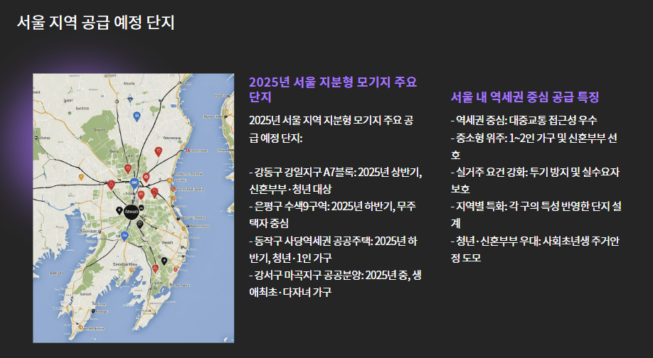 | 동작구 | 사당역세권 공공주택 | 2025년 하반기 | 청년·1인 가구 |