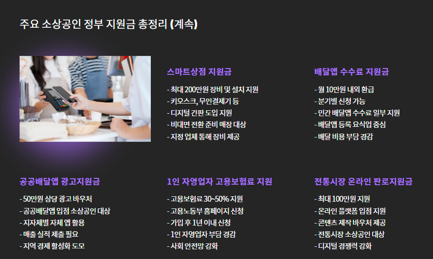 | 스마트상점 지원금 | 최대 200만 원 | 장비 + 설치 지원 | 무인결제기, 디지털 간판 등 필요 매장 |