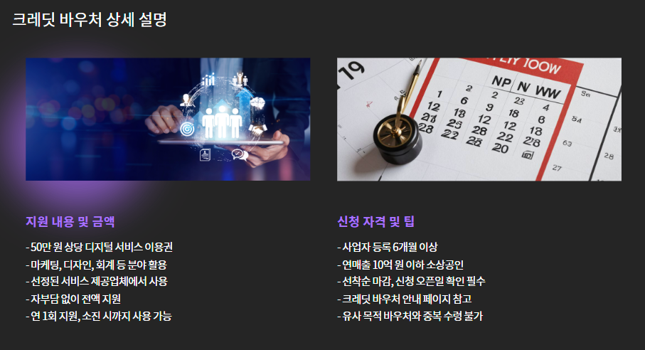 | 크레딧 바우처 | 50만 원 상당 | 디지털 서비스 바우처 | 디지털 전환 소상공인 |