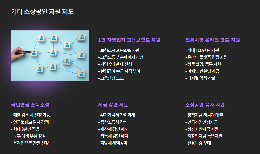| 전통시장 온라인 판로지원금 | 최대 100만 원 | 입점 컨설팅 + 마케팅 | 전통시장 상인 |