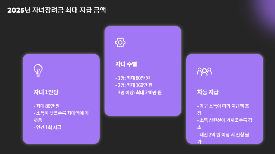 2025년 자녀장려금은 자녀 1인당 최대 80만 원까지 지급됩니다.