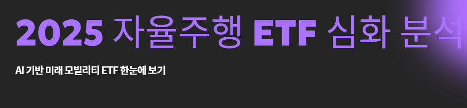 2025 자율주행 ETF 심화 분석 – AI 기반 미래 모빌리티 ETF 한눈에 보기