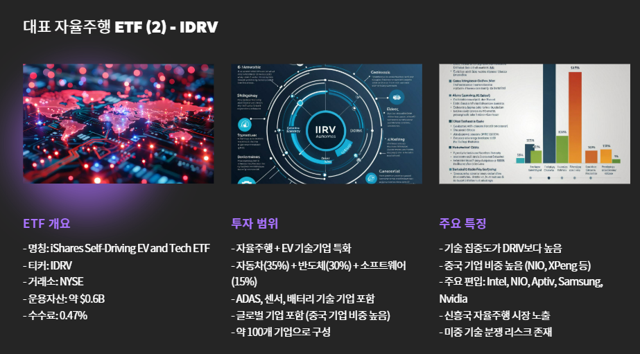 💡 IDRV는 DRIV보다 기술 집중도 높고, 신흥국 기업 비중 있음