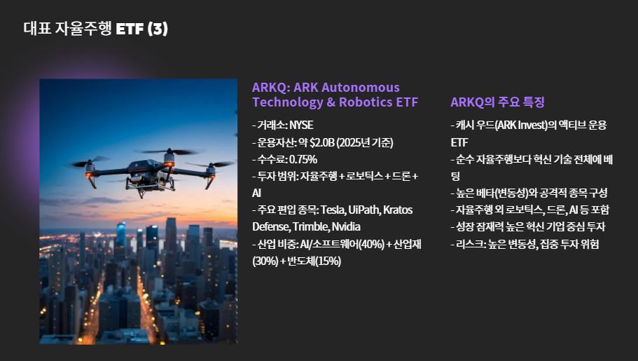 | ARKQ | +23.7% (높은 변동성 감안 필요) |
