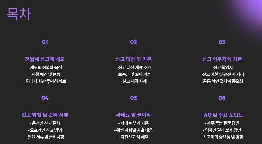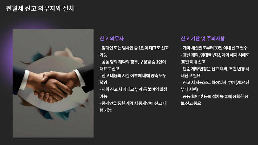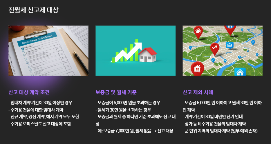 | 전월세 신고 | 계약 내용 등록, 의무화 대상 |