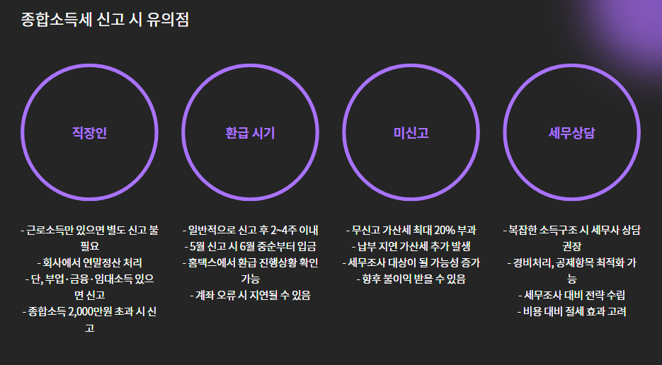 → 특히 프리랜서·임대소득자는 자동 징수 불가라서 직접 신고 필수