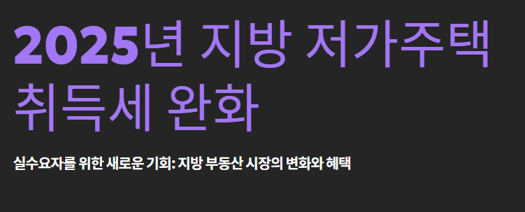 2025 지방 저가주택 취득세 완화 정리|실수요자에게 달라진 기회
