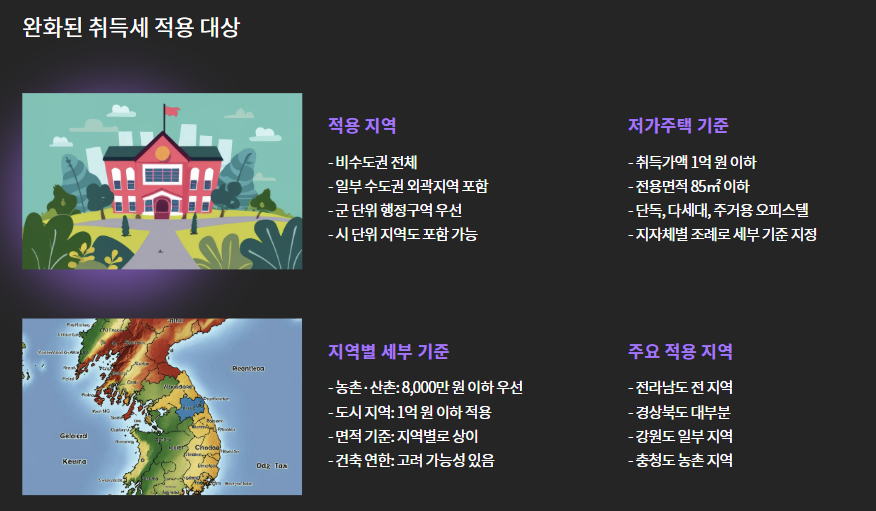 📌 즉, 세금 혜택을 통해 지방 저가주택 수요를 촉진하겠다는 의도입니다.