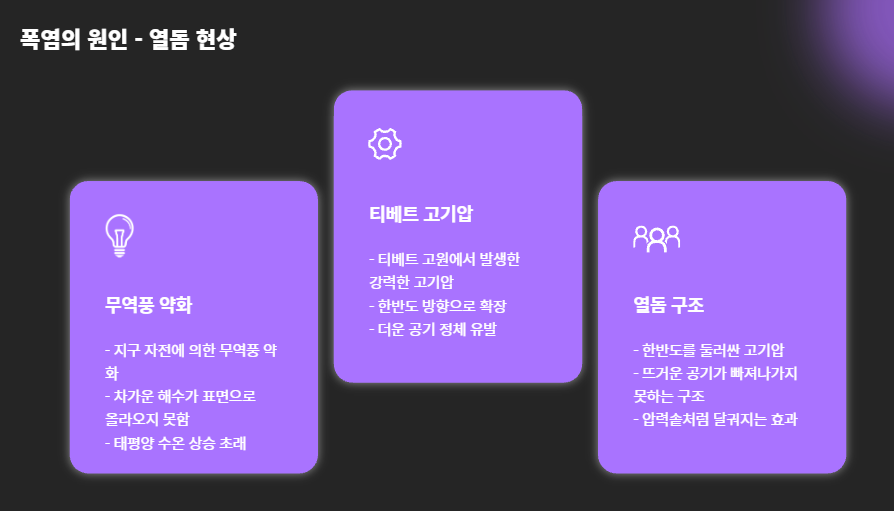 이 열돔은 고온이 빠져나가지 못하게 하며, 한반도를 압력솥처럼 달구고 있습니다.