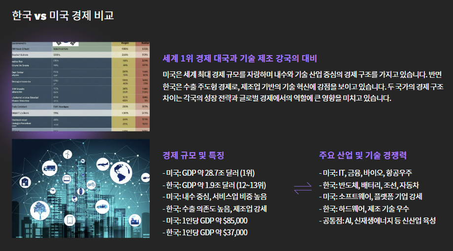 - 한국은 기술 제조 강국이지만, 소비시장·금융 규모는 차이 큼