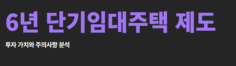 ✅ 6년 단기임대주택이란?