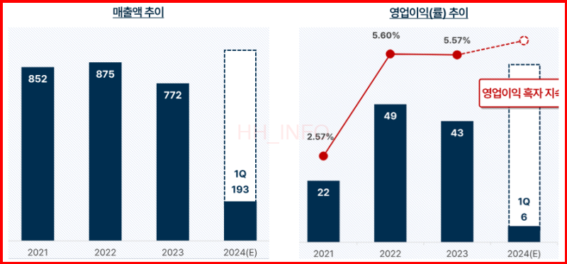 이노스페이스는 하이브리드 로켓 기술을 기반으로 소형 위성 발사체 개발과 발사 서비스를 제공하는 항공우주 관련주예요. 국내 민간 우주 산업을 선도하는 기업으로 주목받고 있답니다. 2017년 설립 이후 꾸준히 독자 기술을 개발하여 저비용 맞춤형 발사 솔루션에서 큰 주목을 받고 있어요. 현재는 상용화에 성공하지 못해 2023년 기준 매출 2억 3천만원, 영업손실 160억을 기록했지만, 내년 3월 첫 상업용 우주발사체 발사를 시작으로 2025년까지 총 7회 발사를 예정하고 있어요. 회사는 2025~2026년에 각각 매출 478억, 972억, 영업이익 18억, 212억을 전망하고 있습니다.
