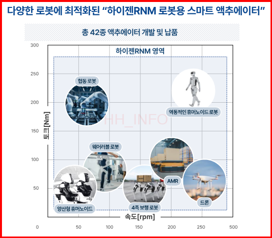 하이젠알앤엠은 AI 로봇 관련주로 주목받고 있는 기업이에요. 회사는 모터 및 구동 모듈(액추에이터)을 전문으로 개발하는데, 다양한 로봇에 최적화된 총 42종의 로봇용 스마트 액추에이터를 통해 AI 로봇 시대의 수혜를 받을 것으로 기대되고 있어요. 국내에서 로봇 액추에이터를 전문으로 개발하는 유일한 기업으로, 최근 주문 확대에 발맞춰 생산 능력을 확대하기 위해 올해 생산라인 면적을 2배 이상 늘릴 예정이에요. 올해 매출은 사상 최대인 900억이 예상되며, 영업이익도 꾸준한 성장이 전망됩니다.