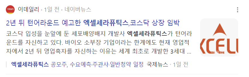 세포배양액은 바이오 산업의 핵심 재료입니다. 엑셀세라퓨틱스는 이 기술을 보유한 유망한 기업입니다.