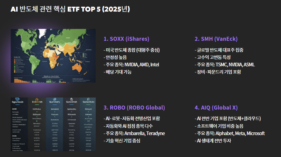 1. AI 반도체 관련 핵심 ETF TOP 5 (2025년 기준)