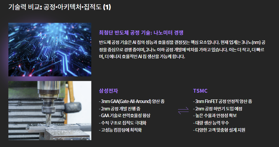 | TSMC | 3nm 안정 양산, 2nm 하반기 예정 | 고객사 IP 기반 (엔비디아, 애플) | CoWoS, InFO, SoIC |