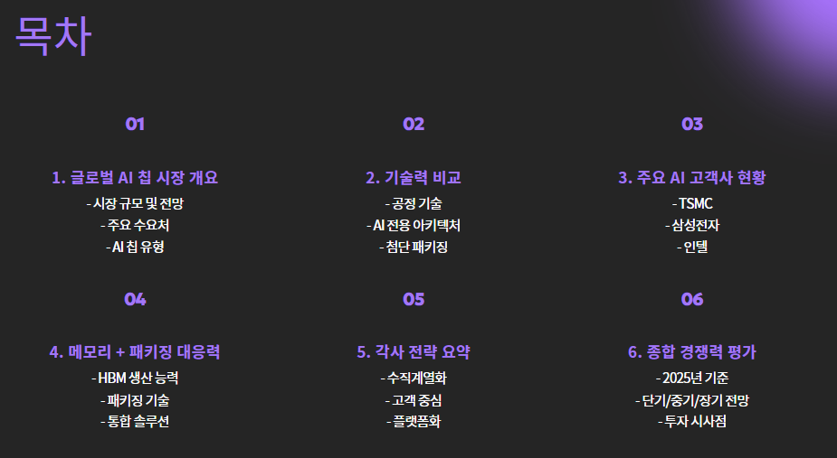 ✅ 기술력 ✅ 고객사 ✅ 수율 ✅ 메모리 대응력 ✅ 생태계 구축 능력 등 핵심 기준으로 정밀하게 분석합니다.