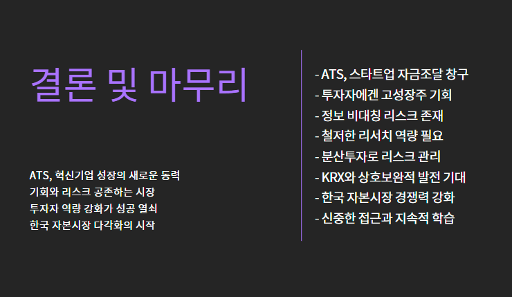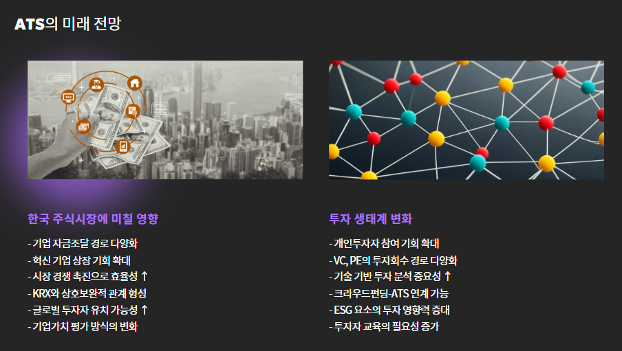 - 기존 기관투자자 위주 → ATS는 개인투자자·VC·엔젤 투자자 중심으로 이동 가능