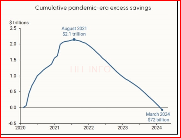 초과저축은 사람들이 갑작스러운 경제적 어려움에도 불구하고 소비를 유지할 수 있는 자금을 의미합니다. 하지만 이제 그 초과저축이 거의 소진되었습니다. 소비가 줄어들면 인플레이션이 하락하게 되고, 이는 연준이 금리인하를 빨리 할 수 있도록 도와줍니다.