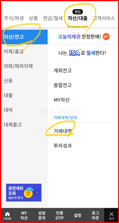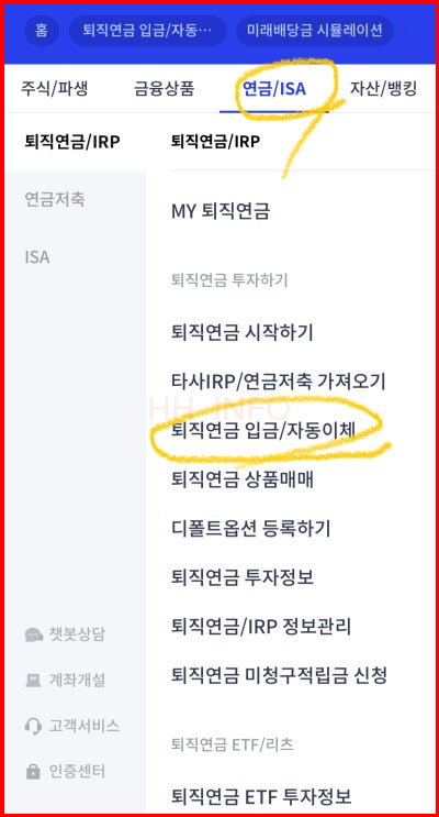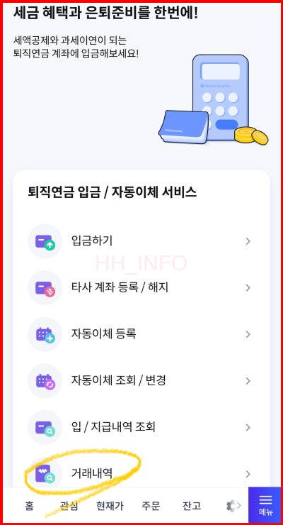 - 연금/ISA → 퇴직연금입금/자동이체 → 거래내역 경로로 들어갑니다.