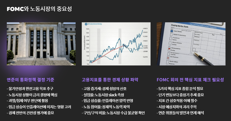 연준(Fed)의 통화정책 회의, 즉 **FOMC 회의(Federal Open Market Committee)**는 시장의 금리 방향성과 투자 전략에 중대한 영향을 미칩니다. 그리고 그 중심엔 항상 노동시장이 있습니다.
