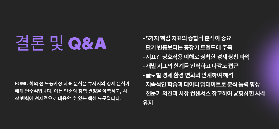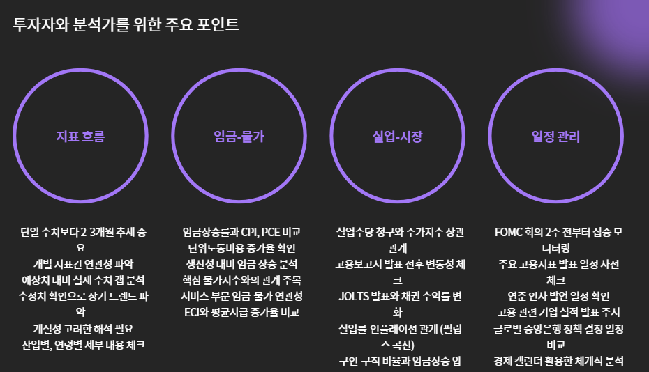 - 고용지표는 단독이 아니라 흐름으로 보라: 2~3개월의 추세 변화가 중요
