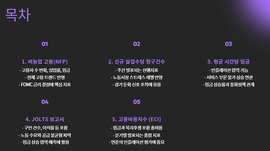 - 주요 발표 내용: 고용자 수 변화, 실업률, 시간당 평균 임금