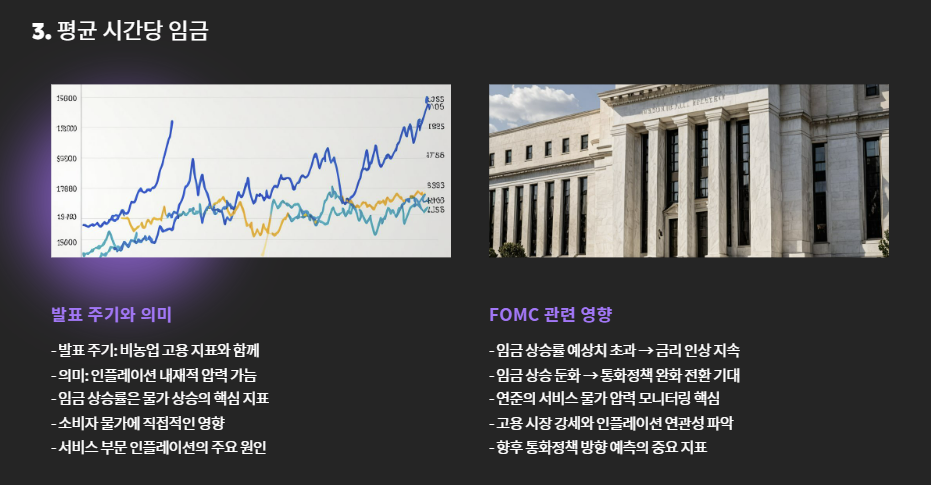 | 평균 임금 | 월간 | 인플레이션 압력 반영 | 상승 시 긴축 유지 |