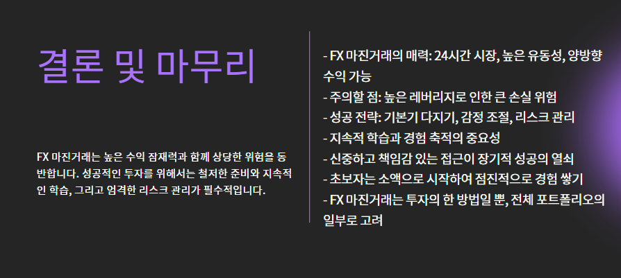FX 마진거래는 빠른 수익을 꿈꾸기보다, 철저한 리스크 관리가 핵심입니다.