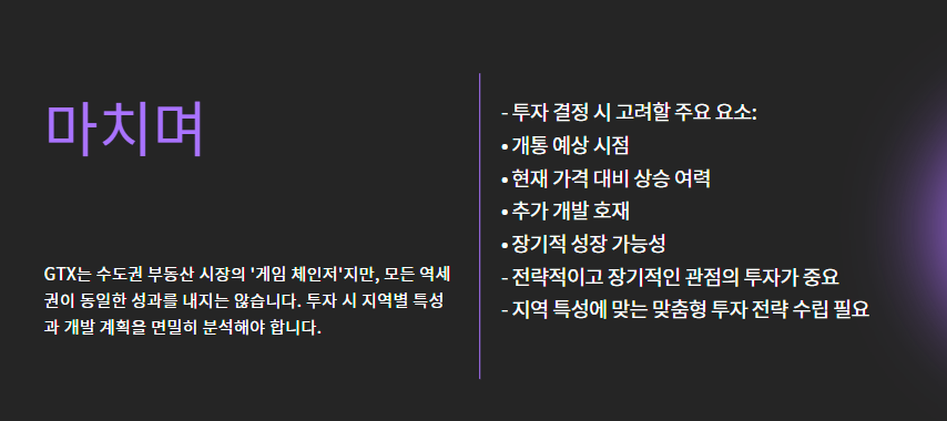 - 장점: GTX 개통 시 서울 진입 시간 대폭 단축
