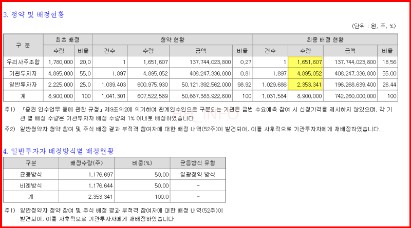 - 직원들이 주식을 받지 못한 경우, 이는 기관투자자와 일반 투자자들에게 배정될 수 있습니다.