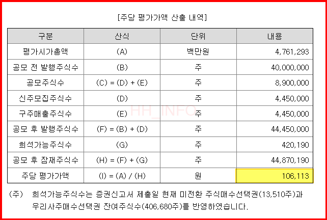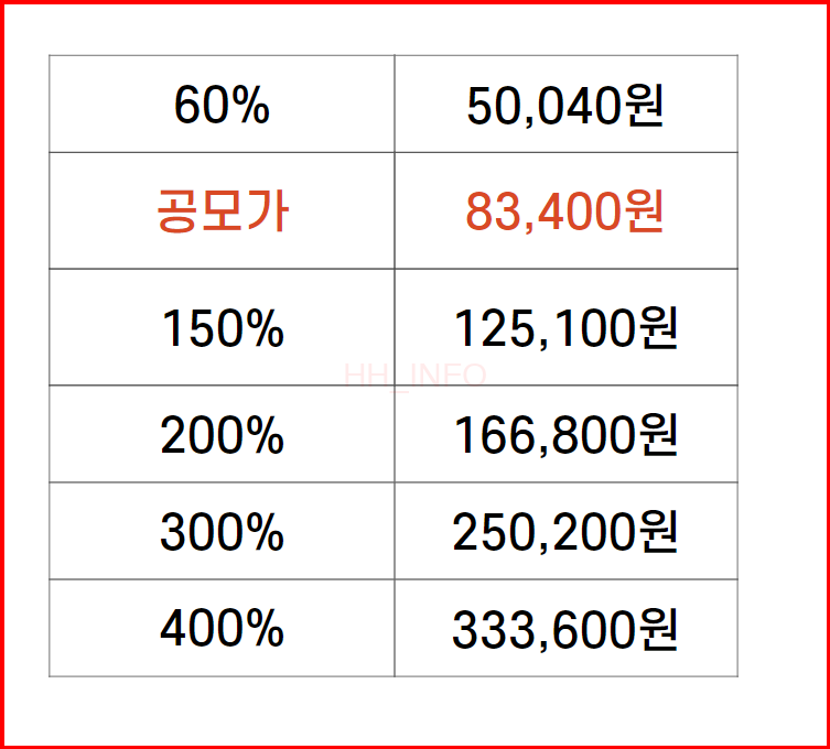 - 상장일 주가는 다양한 요인에 의해 형성될 것으로 예상됩니다. 이는 투자자들의 수요와 시장의 상황에 따라 다를 수 있습니다.