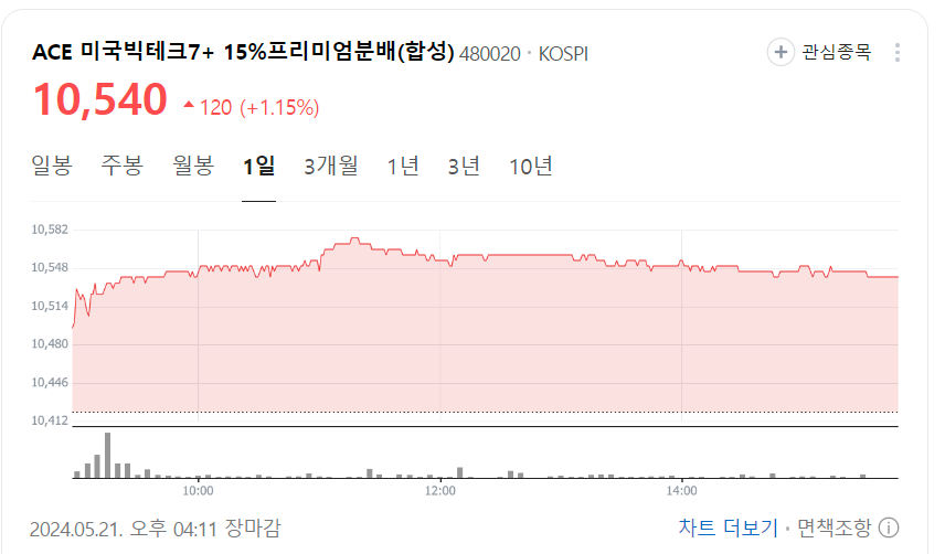 - ACE 미국빅테크7 15% 프리미엄 분배(합성): 10,325원