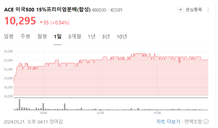 - ACE 미국500 15% 프리미엄 분배(합성): 10,210원
