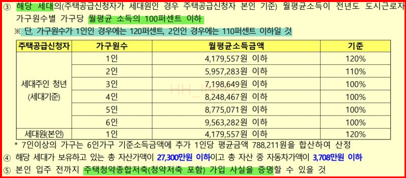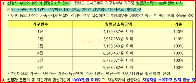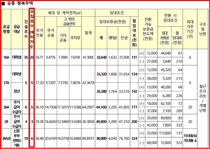 - 주거급여수급자: 전용 26/29타입, 월 임대료 18~20만원